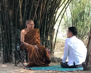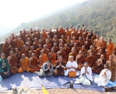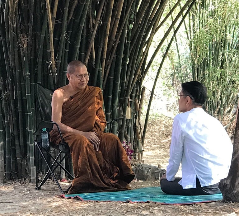 "พระครูธีรธรรมปราโมทย์" (หลวงพ่อสำเริง ธมฺมธีโร) เจ้าอาวาส วัดดอยเทพนิมิต ต.ป่าซาง อ.แม่จัน จ.เชียงราย และ "ประธานโครงการจาริกธรรมตามรอยบาทพระศาสดา"